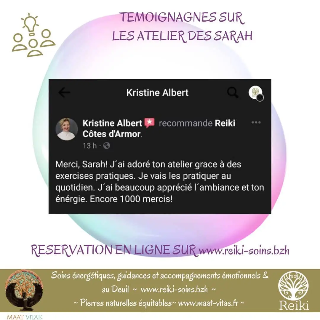 J’ai donc conçu des ateliers qui se déroulent soit à mon cabinet ou sur St Brieuc en fonction du nombre de personnes intéressées. Et aussi sur un format en visio 🙂
